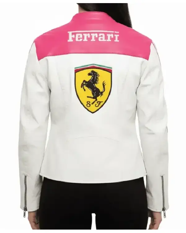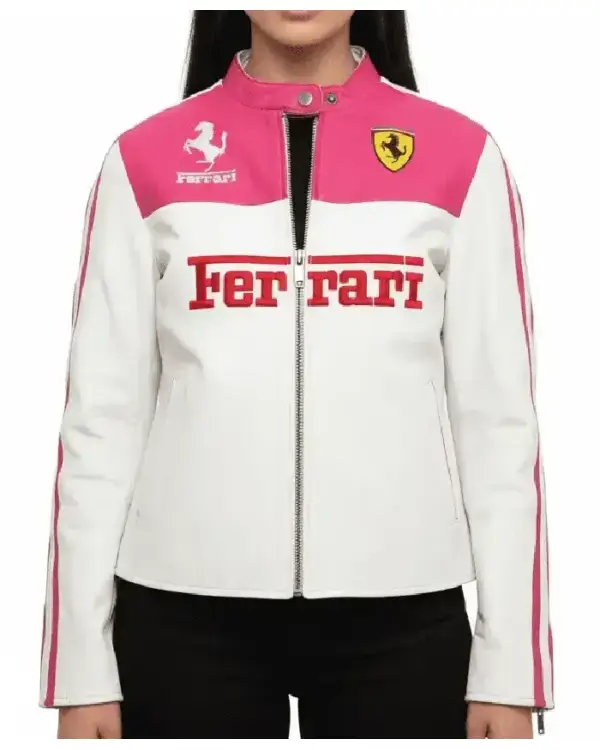 Ladies Ferrari Pink Leather Racing Jacket