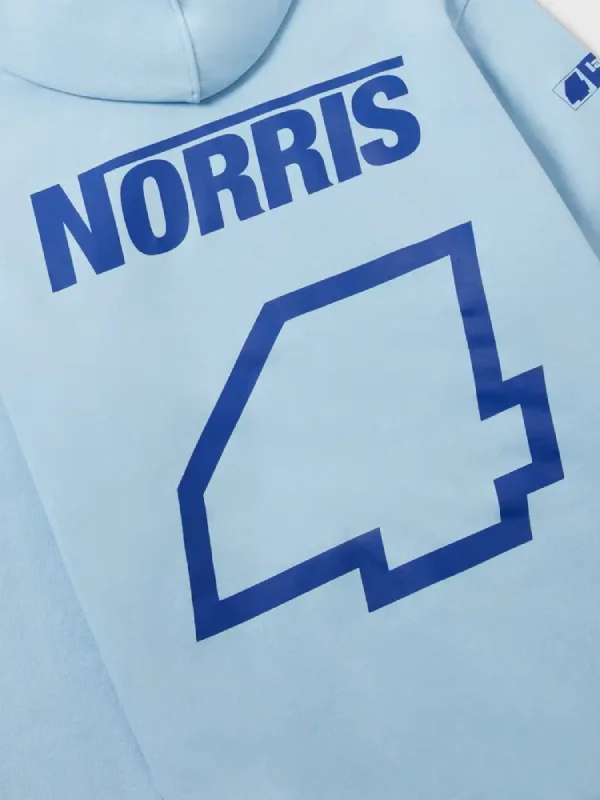 This hoodie is super comfortable! The knitted fabric feels premium and the blue color really pops. Perfect for any Lando Norris fan.