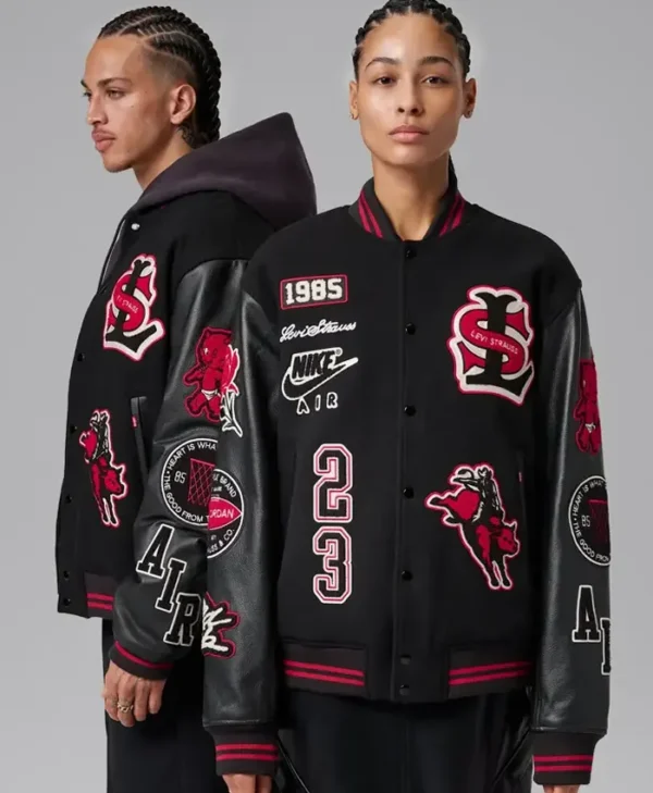 The Levis x Jordan varsity jacket delivers premium style with a perfect streetwear edge.