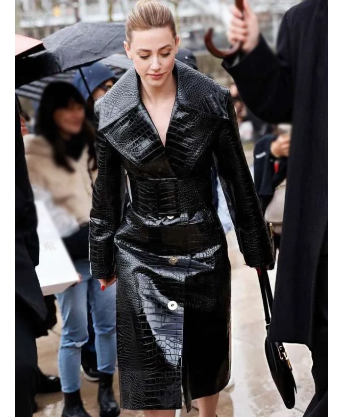 Buy now PFW 2026 Lili Reinhart Black Leather Coat inspired by the iconic appearance of Lili Reinhart at Paris Fashion Week 2026. Made with high-quality genuine or faux leather, soft inner lining, and a tailored design, this black leather coat delivers both elegance and statement fashion. Perfect for fashion events, night outs, and celebrity-inspired street style, it reflects Lili Reinhart’s chic, modern aesthetic. Upgrade your wardrobe with this leather coat for a bold, runway-ready look.