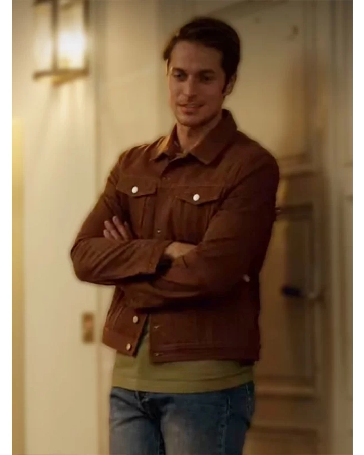 He’s fluent in at least five languages, including English, French, Arabic, Spanish and Italian. He works as a translator for an American company based out of Paris. Gabriel has had feelings for Emily since they met, shortly after he started work at his current place of employment. Emily only sees him as a friend because she doesn’t think there could ever be anything more between them. After all, he’s ten years younger than her. But despite this fact, Gabriel still tries his best to win Emily over every chance he gets by doing the little things like sending flowers or writing letters to show how much he cares for her. He was spotted wearing this Lucas Bravo Emily in Paris Brown Jacket in the show and looked classy.?Introducing the Lucas Bravo Emily in Paris Gabriel Brown Jacket! This stylish jacket is perfect for keeping you warm and looking sharp in any casual or formal setting.