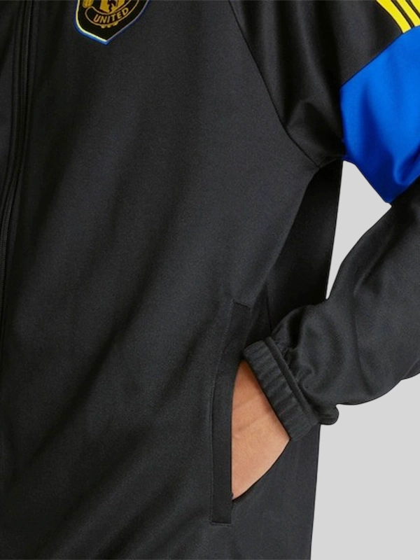 Crafted from premium fleece material, it ensures warmth and flexibility for daily wear or light training sessions. The zip-front closure, stand-up collar, and elastic cuffs create a sleek, sporty silhouette, while the iconic Manchester United and adidas branding adds authenticity. Whether on the streets or at the stadium, this jacket keeps you looking sharp and feeling comfortable.