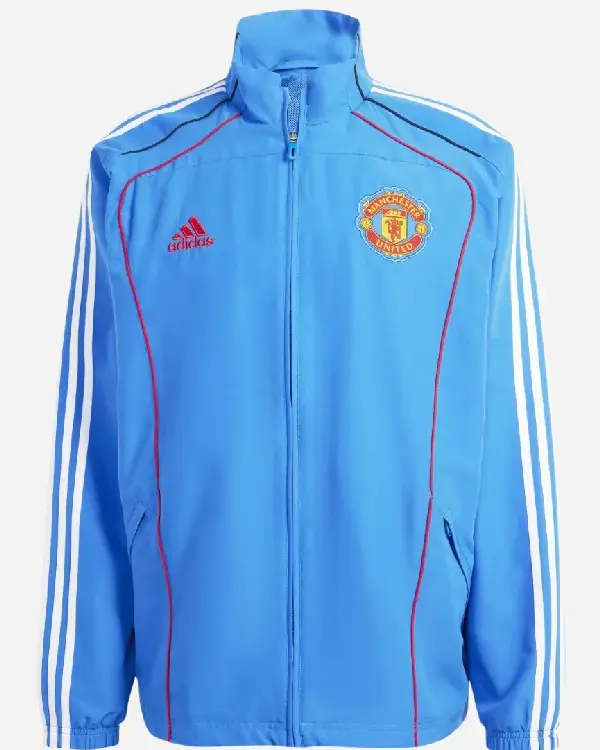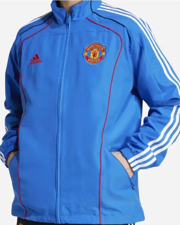 Crafted from soft, durable fabric, it ensures comfort and mobility. The zip-front closure, stand-up collar, and ribbed cuffs create a sleek, athletic silhouette. Finished with minimalist Manchester United and Adidas branding, this jacket delivers premium streetwear appeal while celebrating your favorite football club.