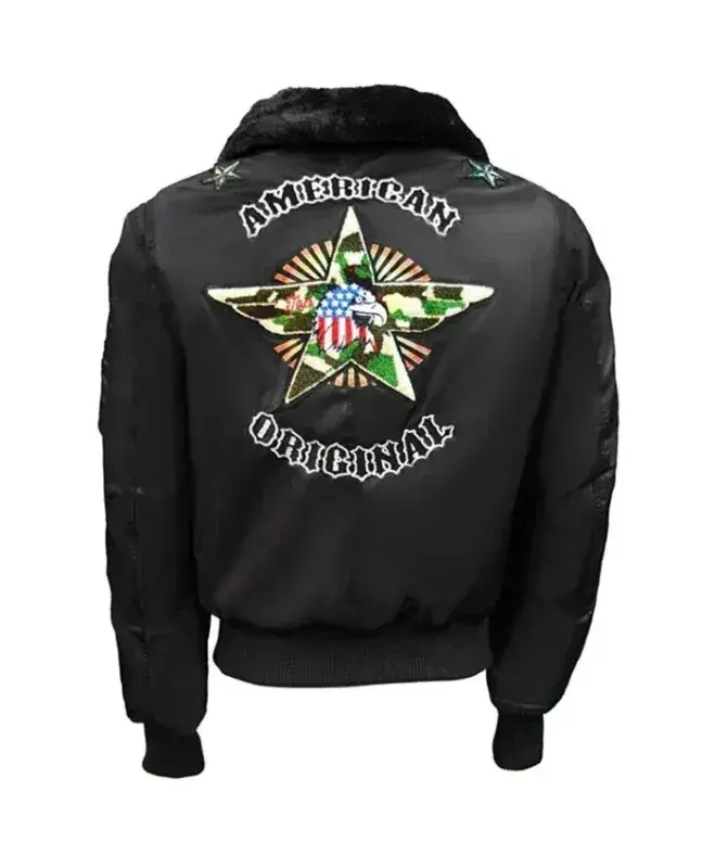 Maverick Top Gun American Tom Cruise MA-1 Flight Black Leather Bomber Halloween Costume Jacket with Eagle Patches
