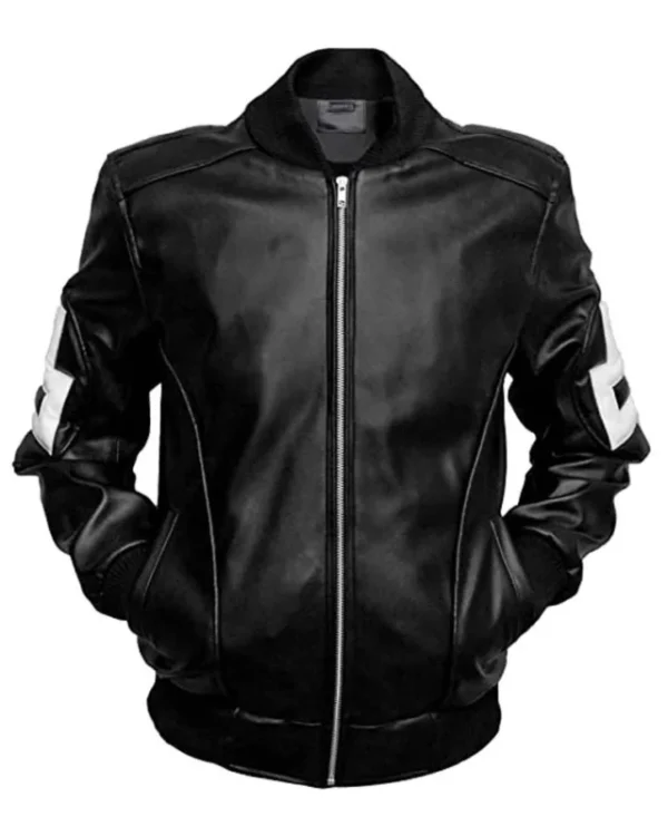 Buy 8 Ball Men’s Black and White Leather Bomber Jacket For Sale