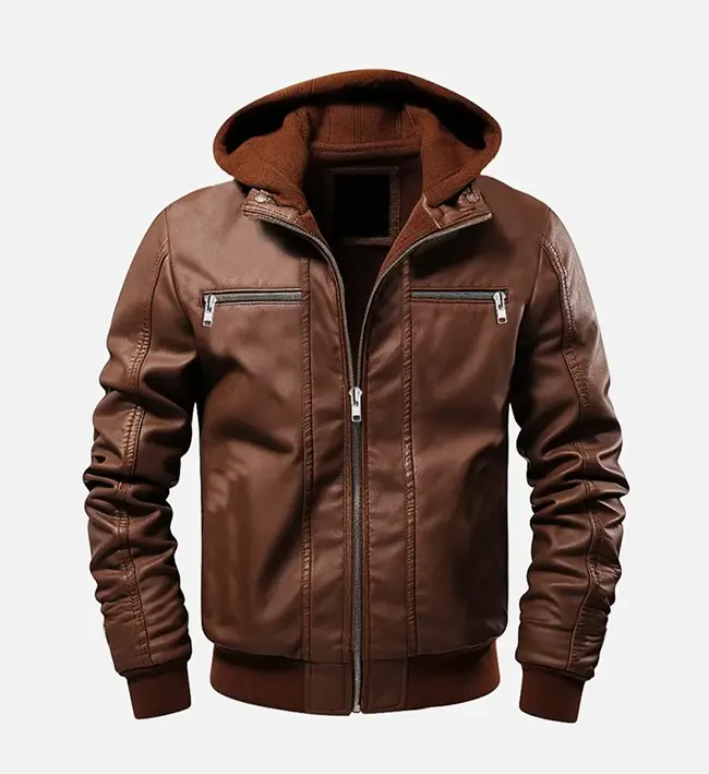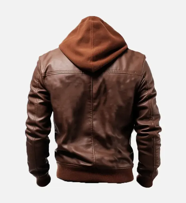 Men’s Ethan Brown Leather Hooded Jacket