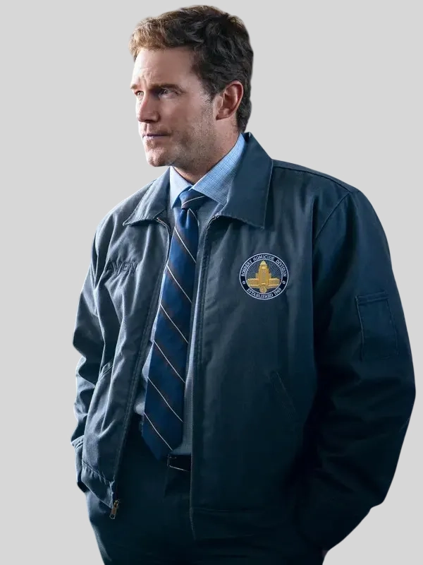 Recreate the rugged style of Chris Pratt from the movie Mercy with this black leather jacket. Made from premium-quality leather, it offers a durable, comfortable, and stylish design for everyday wear or fan collections.
