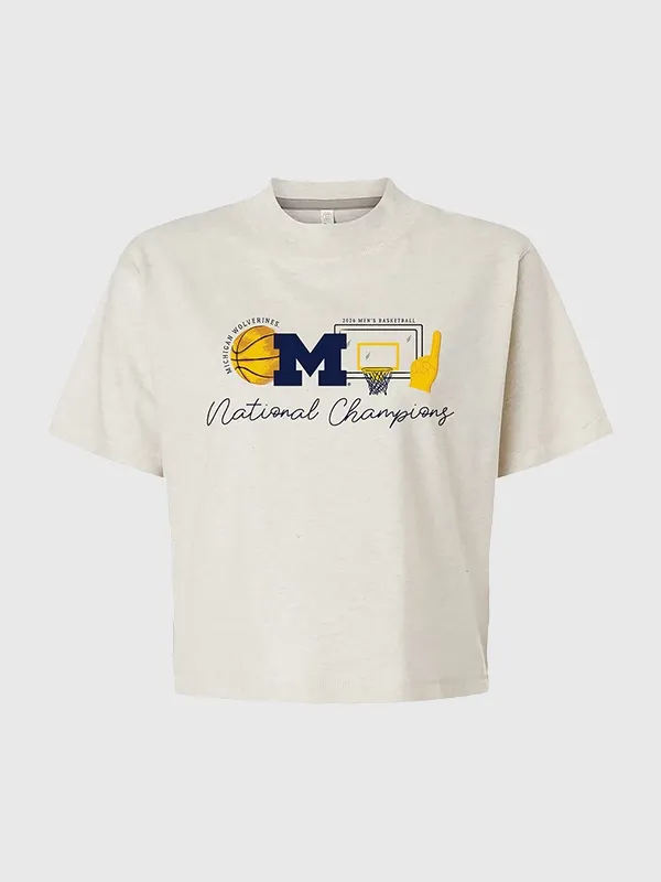 Michigan Wolverines Basketball National Champions Sketch Element Boxy T-Shirt