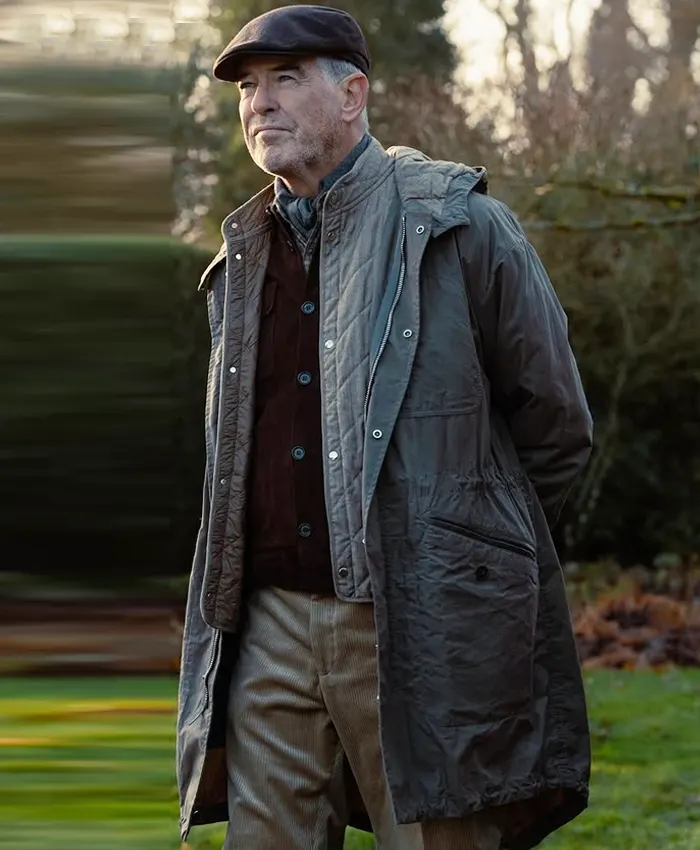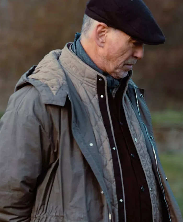 Inspired by Brosnan’s brilliant performance, the Pierce Brosnan MobLand 2025 Grey Hooded Coat captures the very essence of Conrad’s quiet authority and timeless style. Oh yes, it’s more than just a coat it’s a statement.