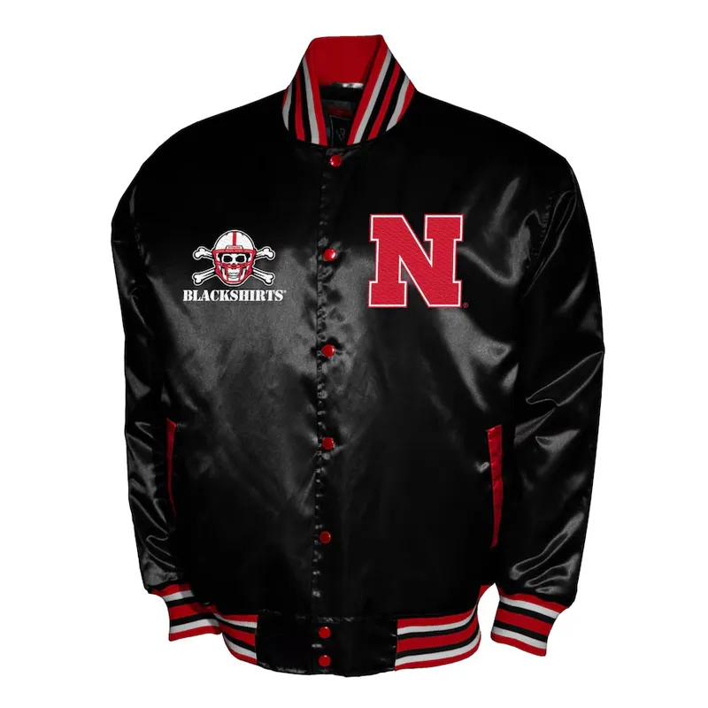 • Bold “Nebraska” text and logo on back, “Blackshirts” text and logo patch on the front