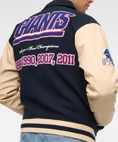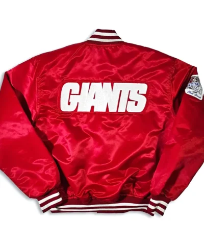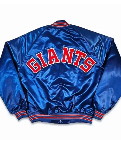 New York Giants Blue and Red Varsity Satin Bomber Jacket