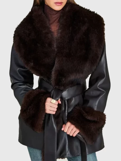 The black faux leather and shearling combo looks amazing.