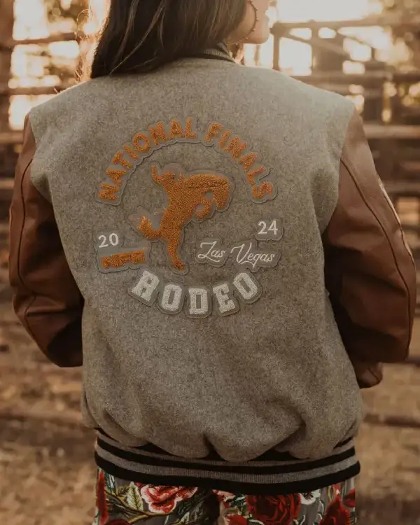 Show your rodeo spirit with the NFR Arena Brown Letterman Jacket. Designed for Western enthusiasts, this jacket combines classic varsity style with arena-ready durability.