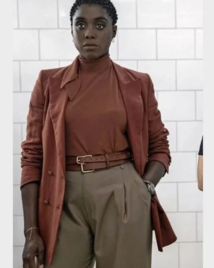 Lashana Lynch Movie No Time to Die 2021 Nomi Double-Breasted Brown Cotton Coat