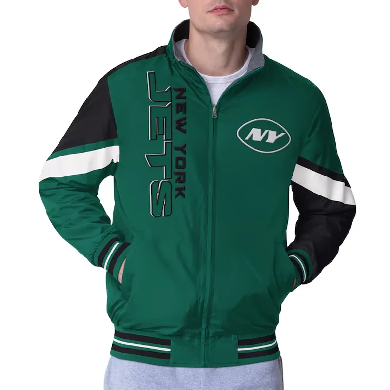 - Logo: Team logo on chest and back, ?New York Jets? lettering are featured on front