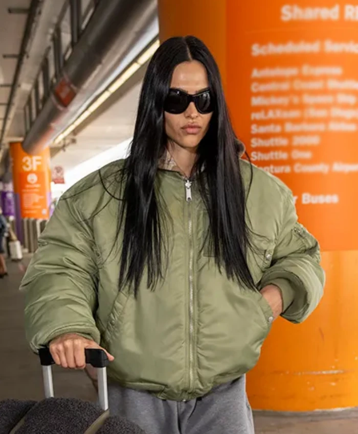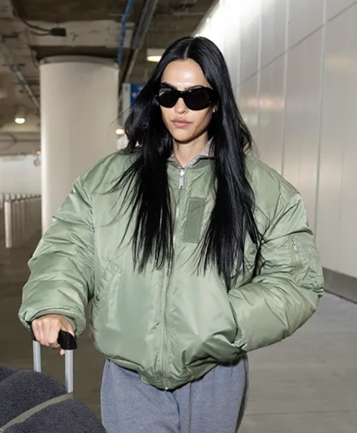 Amelia Gray NYFW 2026 Bomber Jacket, inspired by her standout look at New York Fashion Week. Designed to blend urban chic with contemporary fashion, this bomber delivers both style and functionality.Crafted from premium leather or a durable nylon blend, it provides structure and long-lasting wear. The soft inner lining ensures comfort, while ribbed collar, cuffs, and waistband give it a classic bomber silhouette. The front zipper closure allows easy wear and layering, and practical pockets provide convenient storage for essentials.