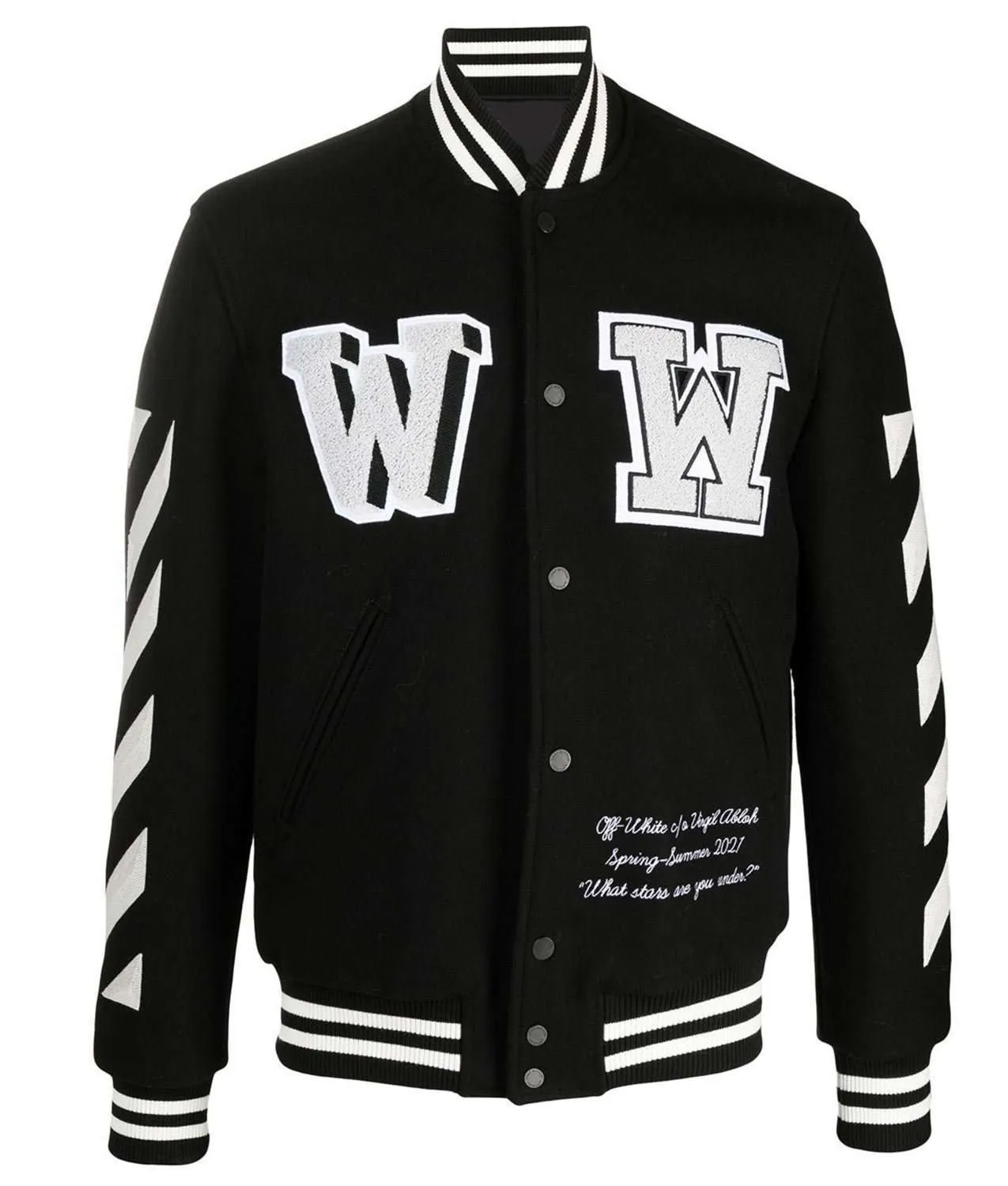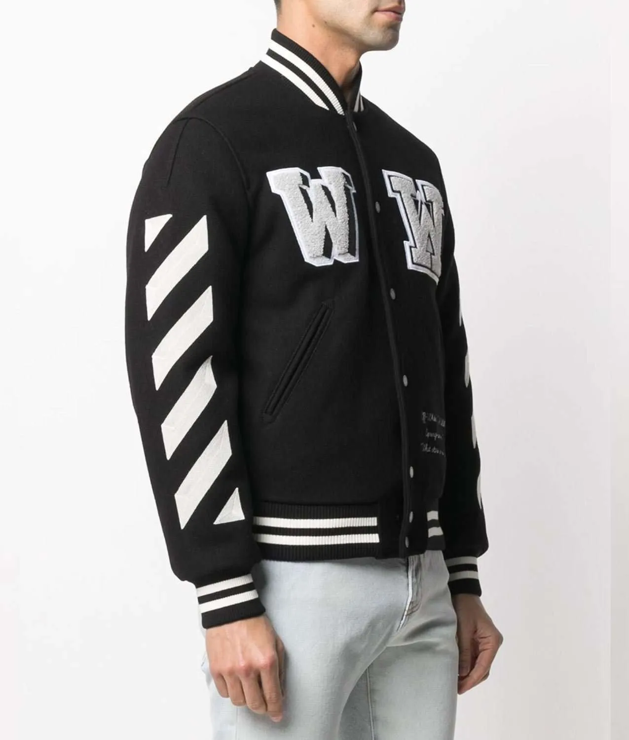 The Off-White Black Letterman Wool Jacket is a perfect mix of classic varsity design and modern streetwear. Made from high-quality wool, this jacket features sleek black tones with signature Off-White detailing. The iconic Letterman style is complemented by contrasting leather sleeves, making this piece both stylish and durable. With bold branding and timeless appeal, it’s a must-have for those looking for a statement jacket that blends comfort, quality, and cutting-edge design.