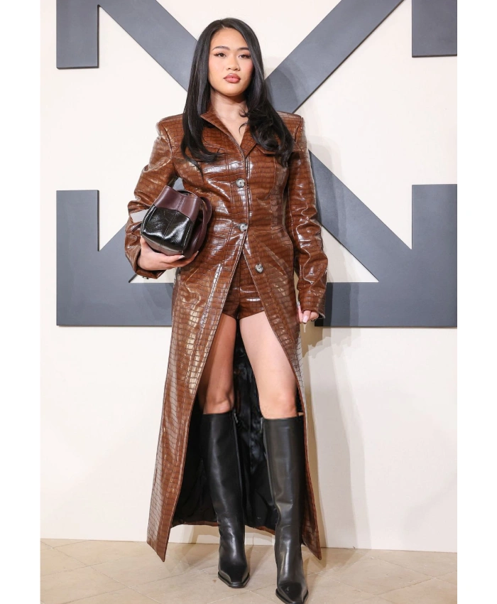 The Sunisa Lee Off-White Fashion Show Leather Coat is a high-fashion outerwear piece inspired by Sunisa Lee’s iconic appearance on the runway. Crafted with premium leather, it combines luxury, durability, and contemporary streetwear aesthetics.