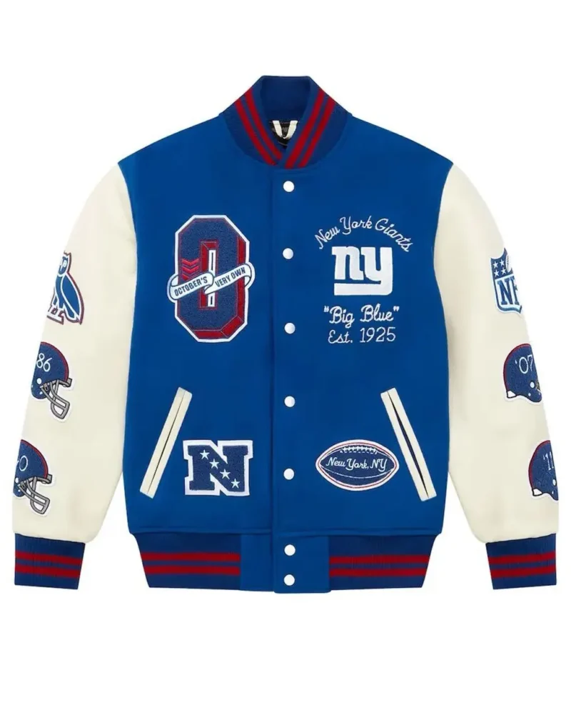 Buy New York Giants OVO Full-Snap Wool and Leather Varsity Jacket Sale