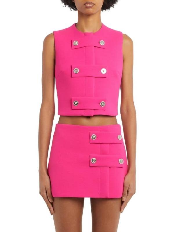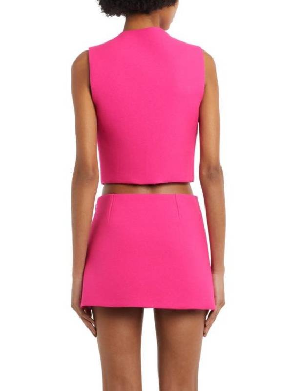 Absolutely adore this pink vest! The rounded collar and darts at the chest make it look so chic and flattering.