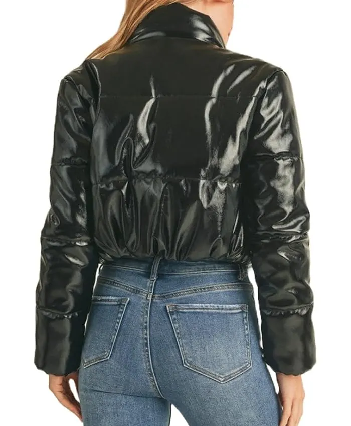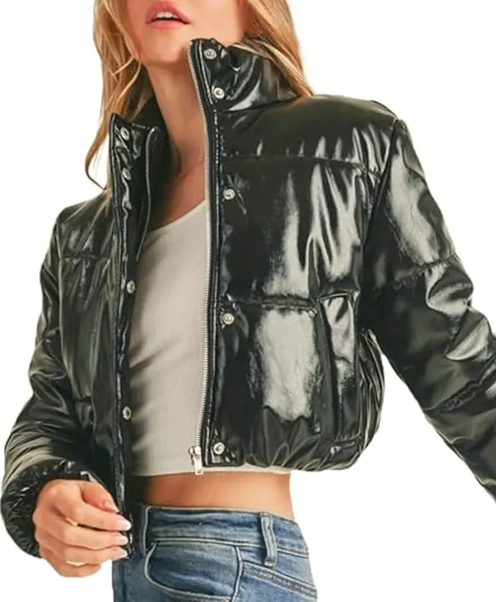 Did you find something about a shiny, sleek jacket that immediately grabs your attention? So, here you go with a patent leather cropped puffer jacket. It is just that. The glossy black patent leather gives it a high-fashion edge. At the same time, the puffer design adds a layer of warmth that?s perfect for those chillier days. It?s a piece that blends the best style and practicality, offering boldness and convenience in one package.