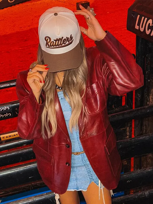 PBR Texas Rattlers Morgan Nicole Red Leather Blazer