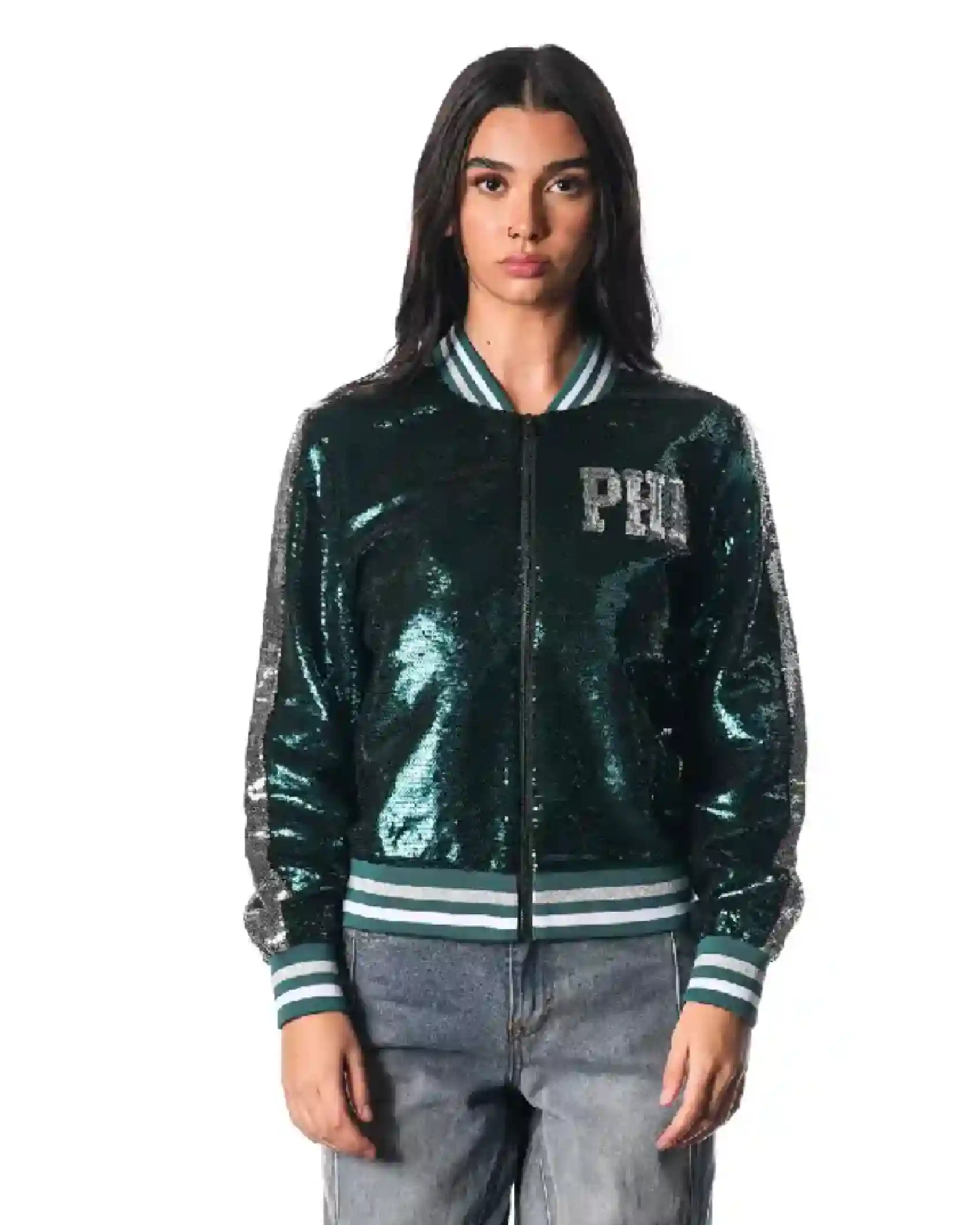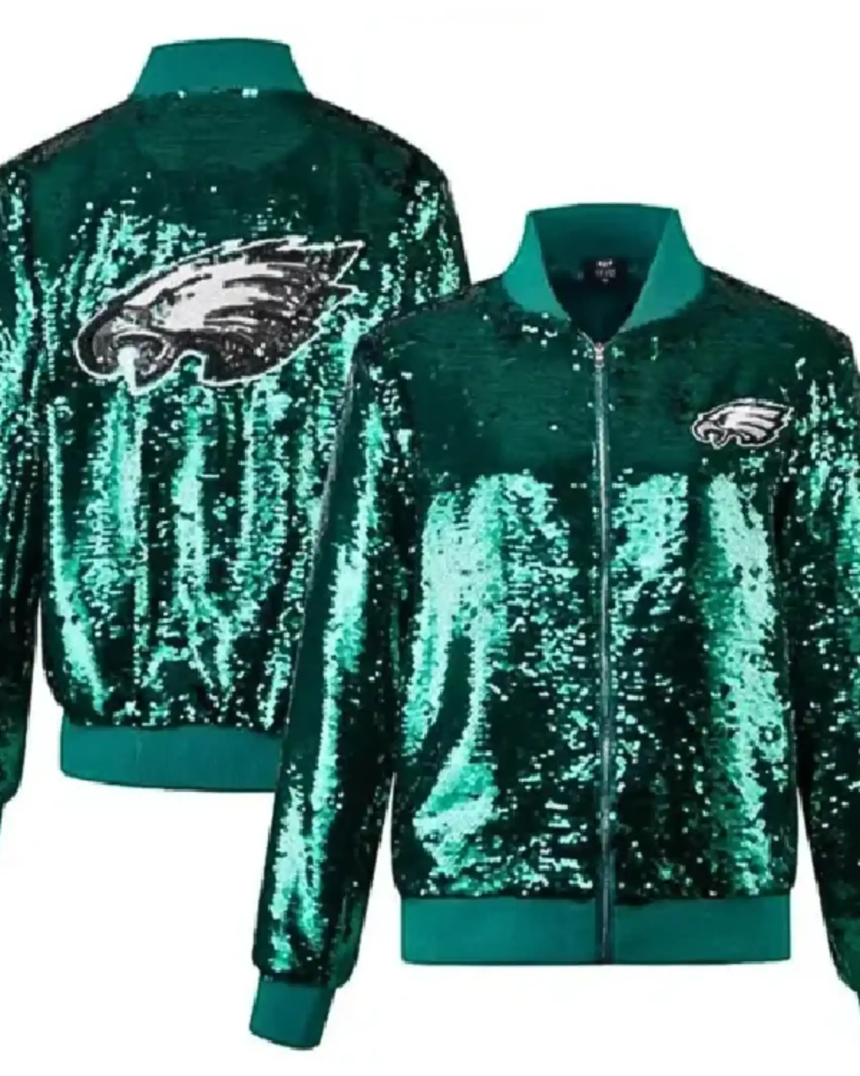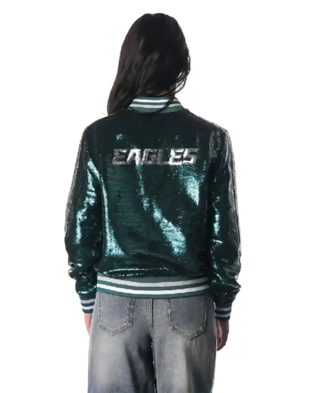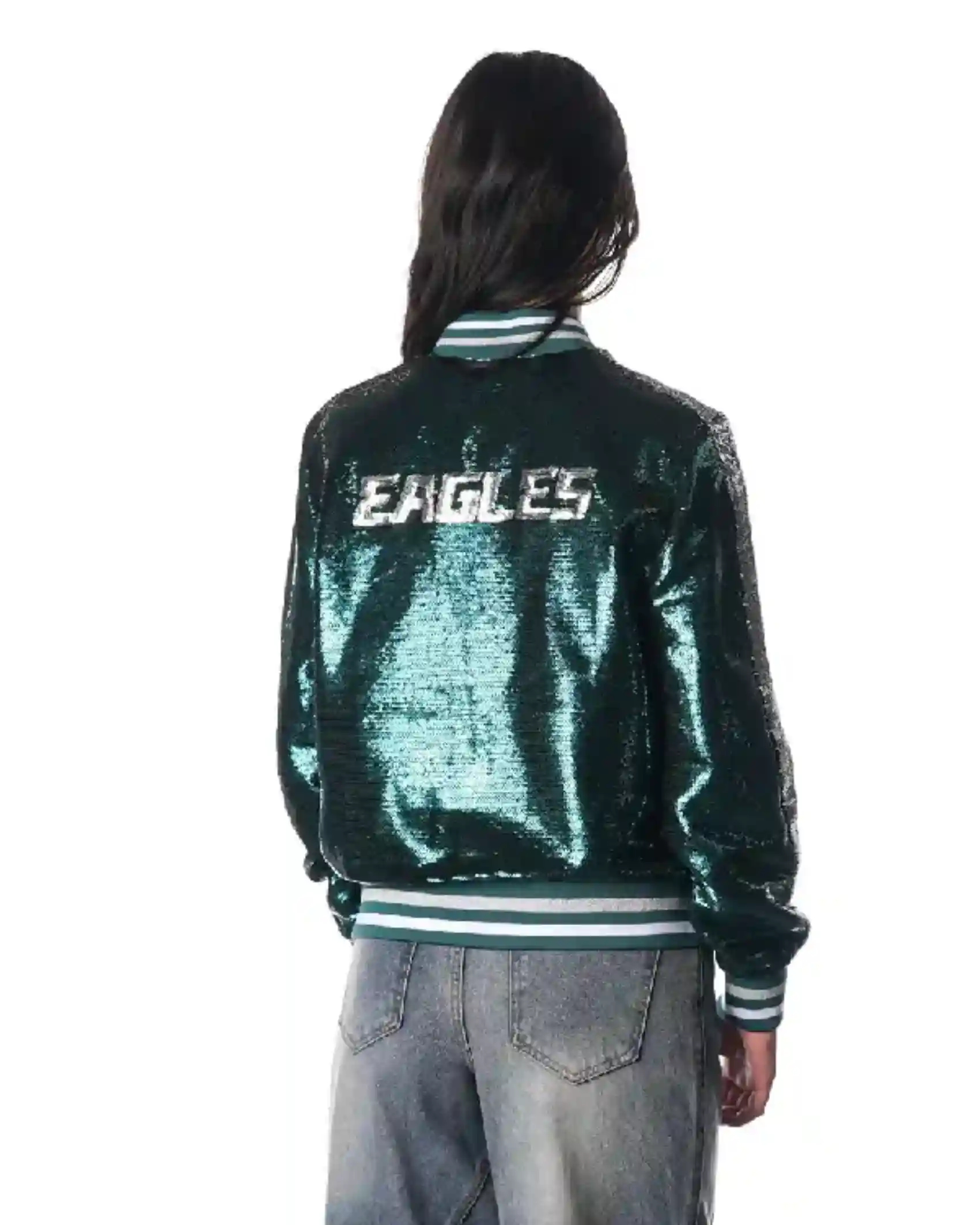 Shop Women’s Philadelphia Eagles Green Sequin Bomber Jacket Sale
