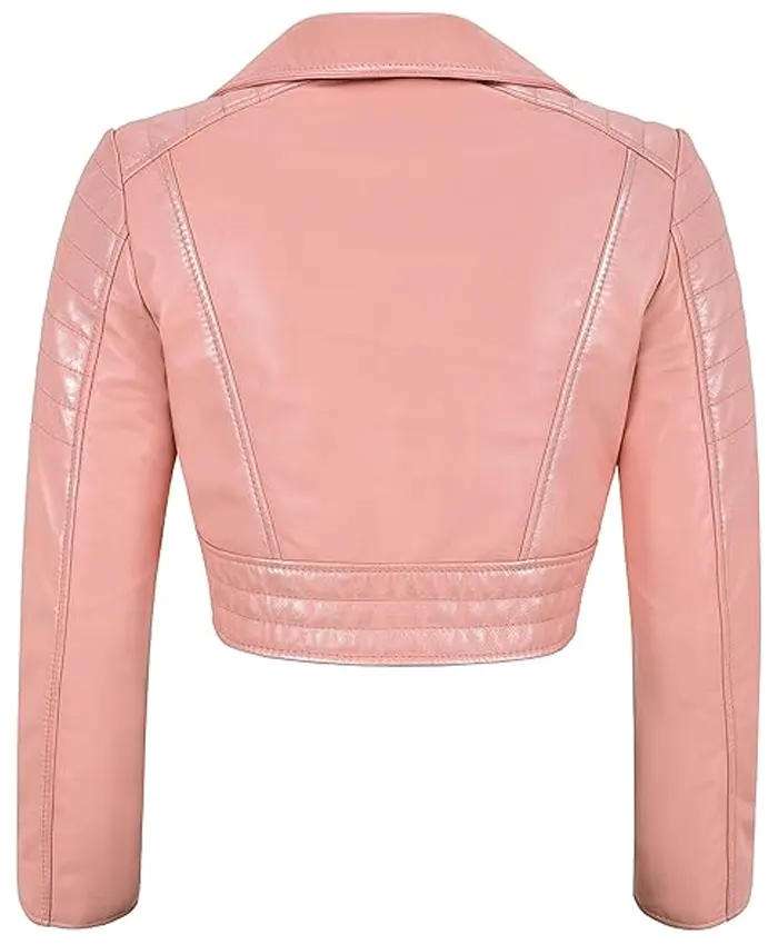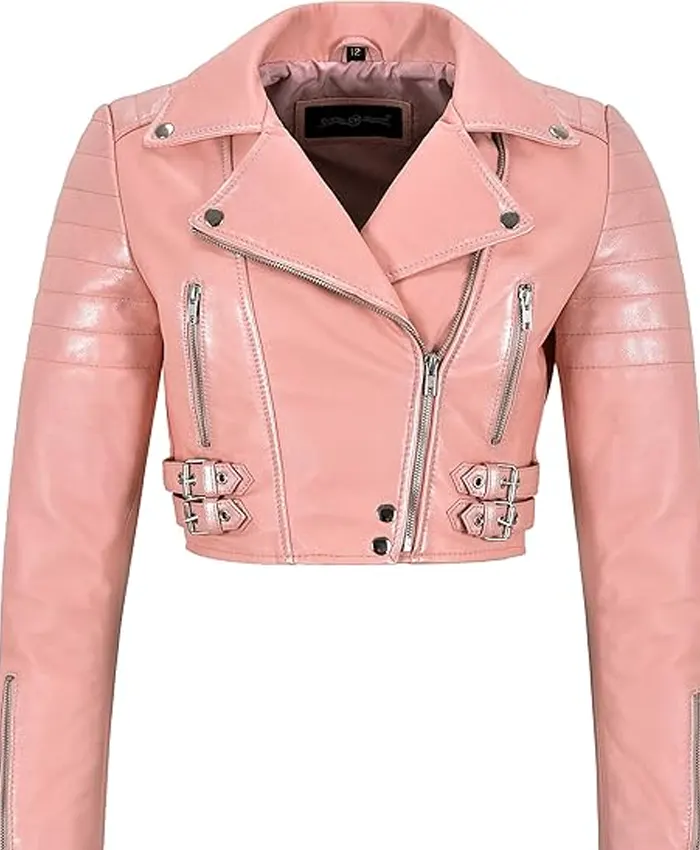 In every aspects, this pink cropped leather jacket is the ideal selection for every women. This pink color also provide you the open ground to make any style and worn over your any color attires. The last but not least, it is also featured with two side and two inner pockets to store your accessories ideally.?