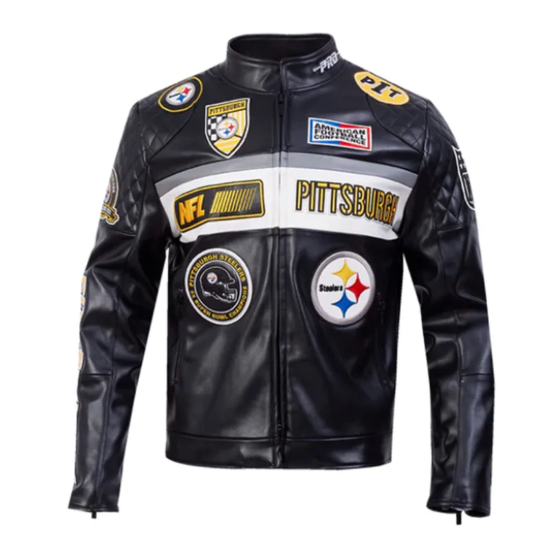 Expertly stitched and finely tailored, the Pittsburgh Steelers Moto Leather Jacket combines craftsmanship, confidence, and heritage — making it a standout piece that proudly celebrates your team and your style.