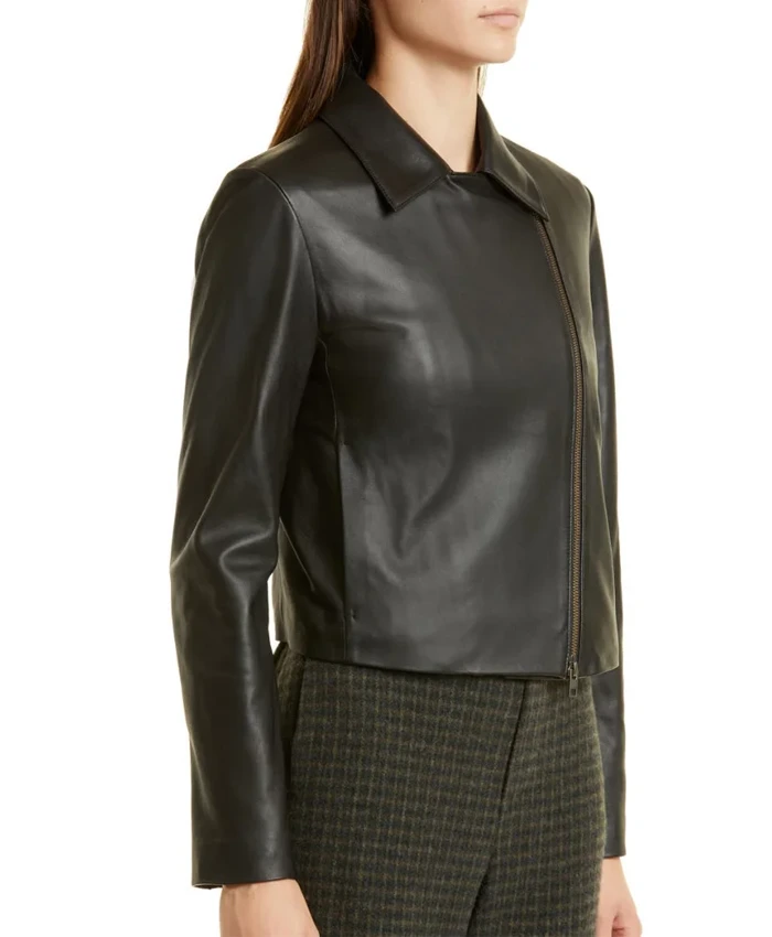 In our wide range of Women Biker Leather Jackets, we recently added a plain moto jacket that is a versatile combination of a rocker look with a touch of chicness. With that, its classy and fascinating black color is hard to resist, making it a must-have piece in your winter wardrobe. Besides that, you can easily layer it over almost any outfit, such as you can dress it up with a flowy dress and ankle boots for an elegant night out, or layer it over a graphic tee and your jeans to keep your vibe casual and comfy. It is designed for both function and fashion, which makes it perfect for layering, providing warmth without bulk. Despite that, its fabrication includes all premium materials like high-end leather that emphasizes durability while maintaining a sleek appearance.