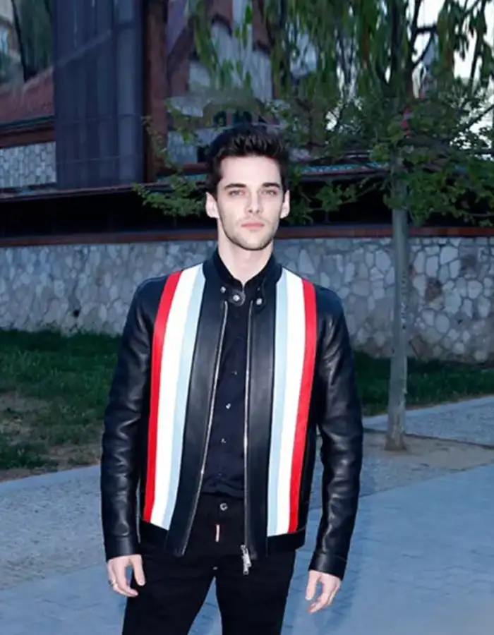 Alvaro Rico Elite Polo Premier Black With Red White and Blue Stripes Cafe Racer Biker Leather Jacket