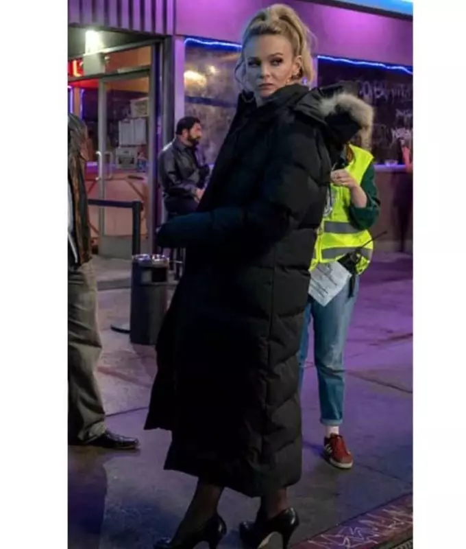 We have recreated this Carey Mulligan-inspired coat and let you be the judge of its style statement. This black coat has a parachute exterior and viscose lining inwards. Apart from a fur hooded collar, you have full sleeves with rounded cuffs, two side waist pockets, and buttoned closure.