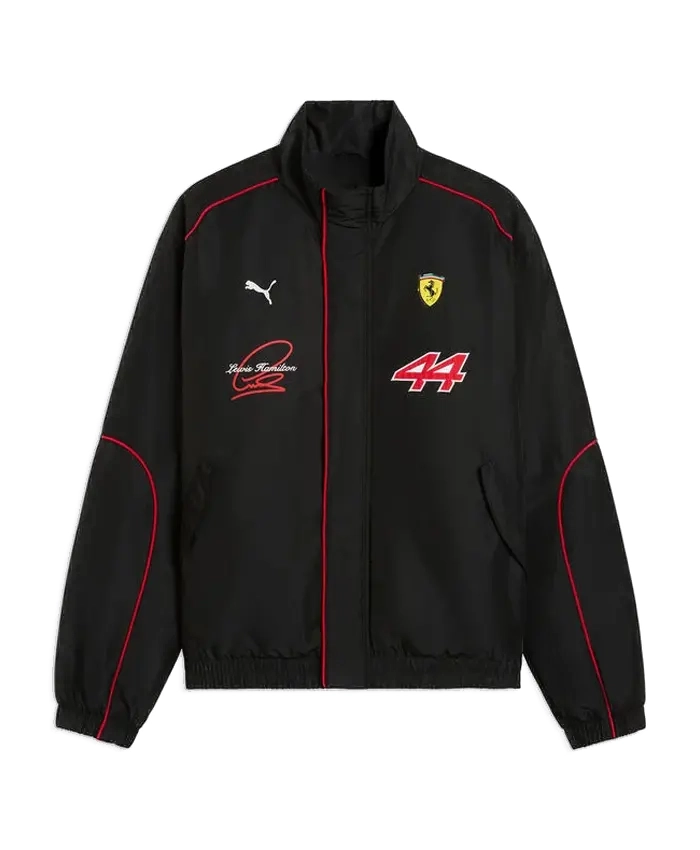 The PUMA Ferrari F1 Lewis Hamilton Jacket is a stylish racing-inspired outerwear piece designed for motorsport fans and modern streetwear lovers. Inspired by the energy of Formula 1 and the legendary racing culture, this jacket delivers a perfect mix of performance style and everyday comfortCrafted with high-quality fabric, the jacket offers durability and lightweight comfort for daily wear. The soft inner lining ensures warmth and a smooth feel, making it ideal for cooler days or outdoor activities. Its premium stitching and high-quality construction provide long-lasting reliability while maintaining a sleek and sporty appearance.Featuring a modern front zipper closure, the jacket is easy to wear and provides adjustable comfort. The stand-up collar enhances the racing-inspired design while offering additional protection against wind. The long sleeves with fitted cuffs help maintain a structured and comfortable fit.The bold design and racing aesthetic reflect the high-speed world of Formula 1 and the iconic style associated with Lewis Hamilton. This jacket pairs perfectly with jeans, joggers, or sneakers, allowing fans to showcase their passion for motorsport while maintaining a fashionable streetwear look.