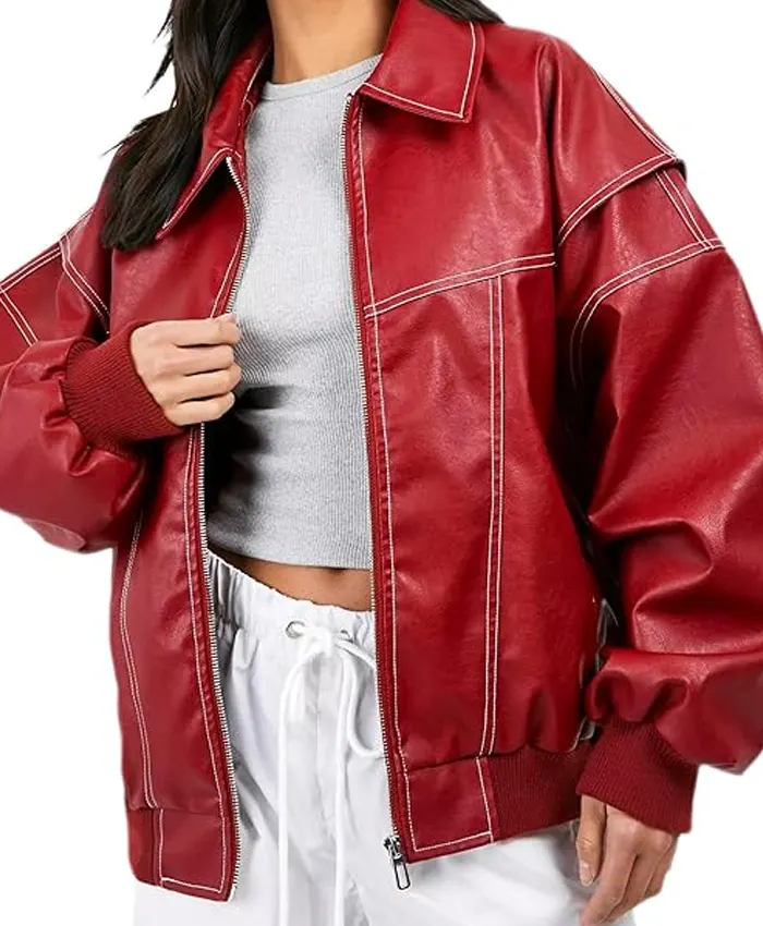 Red Leather Jacket Women Oversized