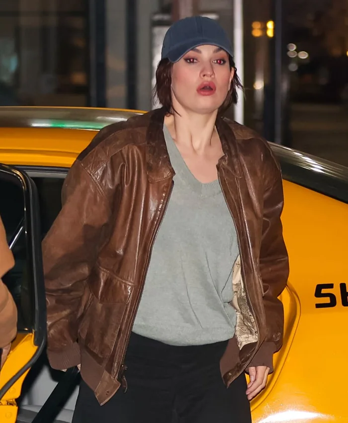 Relay Lily James Brown Leather Jacket