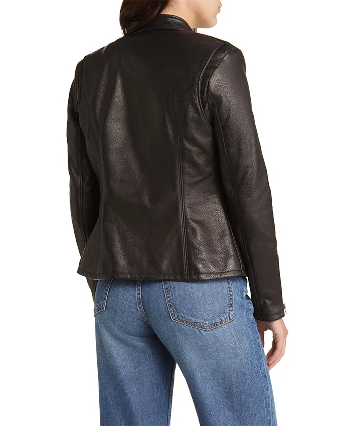 Rennet Black Leather Biker Jacket Women For Sale