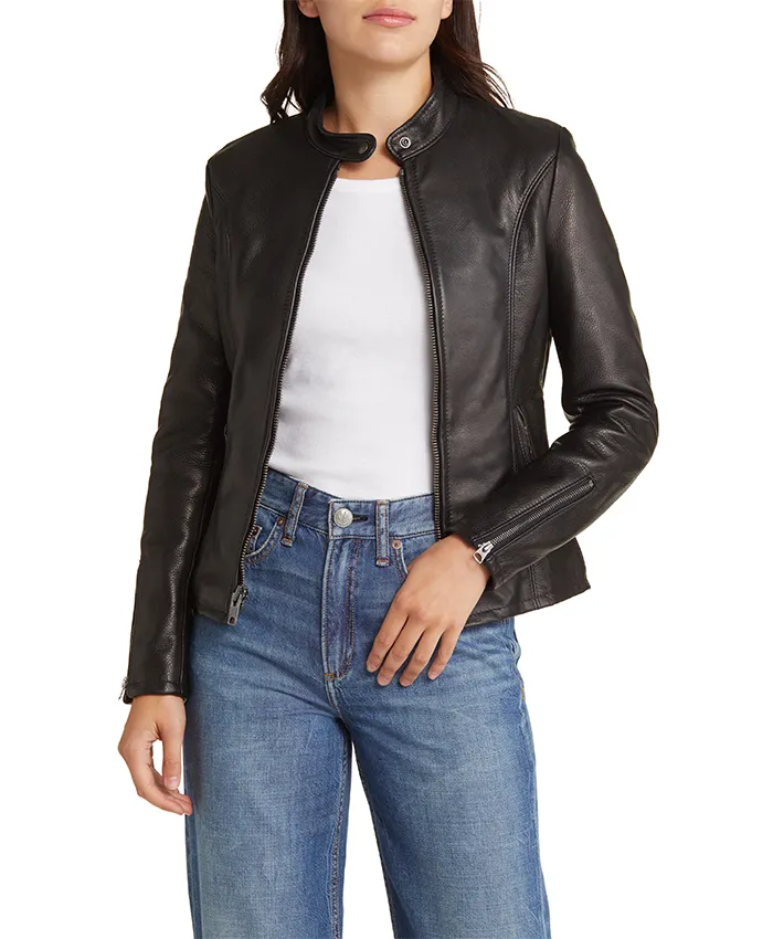 Let’s talk jackets for a moment. You know that feeling when you slip on a piece that just fits? Not just physically but it clicks with your style your attitude. A good biker jacket does exactly that. It’s an instant boost. That’s what we aimed for with the rennet black leather biker jacket for women. We wanted something that felt authentic something that spoke of classic style with a modern edge. So, if you want to get this iconic pieace – Order now from our Best BLACK LEATHER JACKET WOMEN at reasonble prices!
