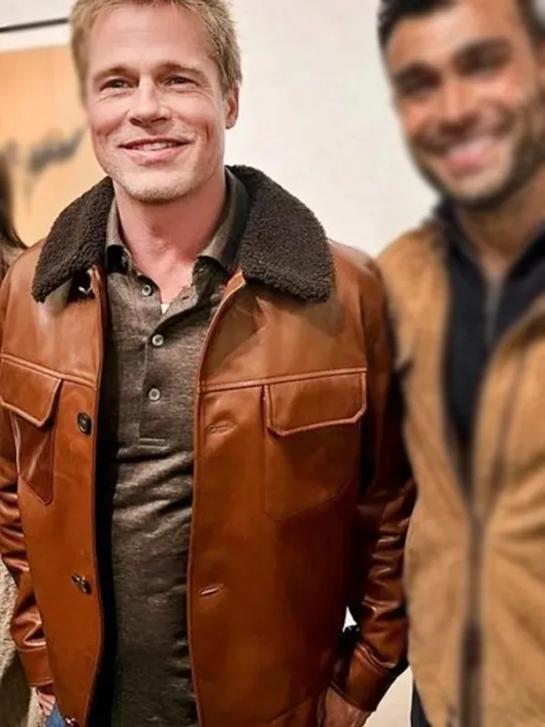 Show your daring side to the world with this outerwear and dominate the fashion world. Explore the Brad Pitt Art Exhibit LA Shearling Leather Jacket at Jacket Hub and exhibit your passion for fashion. The hearth-throb of the nation “Brad Pitt” appeared at the Beverly Hills Art Exhibit LA flaunting this masterpiece grabbing the attention of all his fans. After seeing this iconic moment, we decided to create a twin wear of it. However, here we are with it!