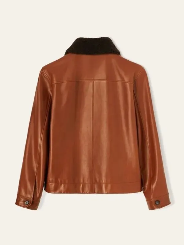 The external material of this fashion staple is genuine leather which is a combo of classiness and warmth. However, we have insulated the internal part of this Brad Pitt Beverly Hills Art Exhibit Brown Shearling Leather Jacket with a viscose lining to make it silky and soft. Besides, this top layer consists of a shirt-style fur collar beautifying its look. Also, the frontal contains a button closure giving you a secure fit. Moreover, this iconic piece comes with long sleeves that secure your wrists and arms from cold winds. Furthermore, there are two internal and four outer pockets in this wardrobe staple to keep your stuff.