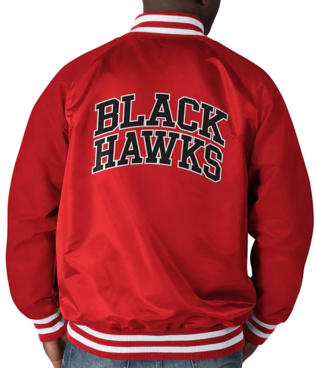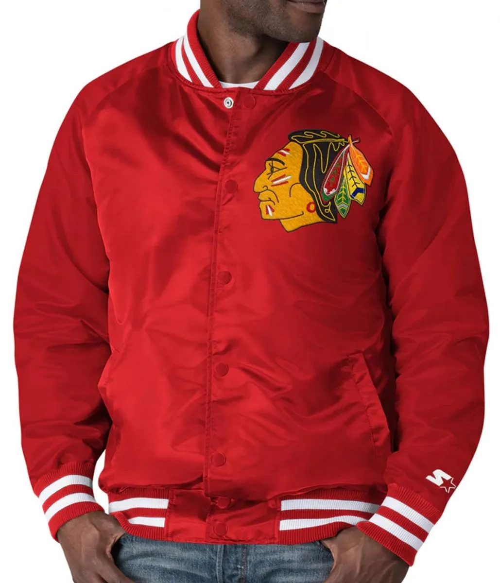 Starter Chicago Blackhawks Bomber Retro Button-Up Red Satin Jacket