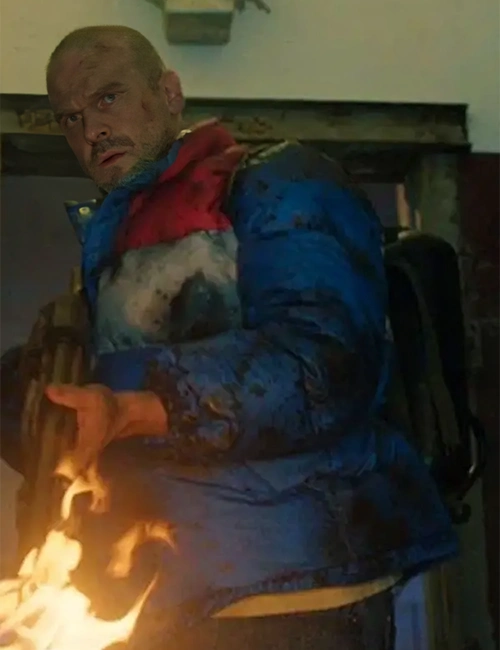 The presented David HarbourStranger Things Season 04 Jim Hopper Blue and Red Puffer Jacket is the ideal addition to any season’s wardrobe.? Further, the item has already regarded as one of the best sellers in the entire collection due to its tempting characteristics, such as the zipper front, stand-up collar, waist pockets, elastic cuffs, and attractive color-block print.