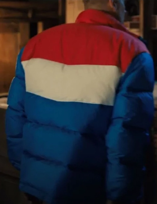 David Harbour TV Series Stranger Things Season 04 Jim Hopper Button Down Blue and Red Colorblock Parachute Puffer Jacket