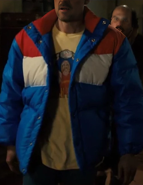 David Harbour wears Stranger Things Jim Hopper Puffer Jacket made of parachute material. You can wear it at public gatherings and outdoors.