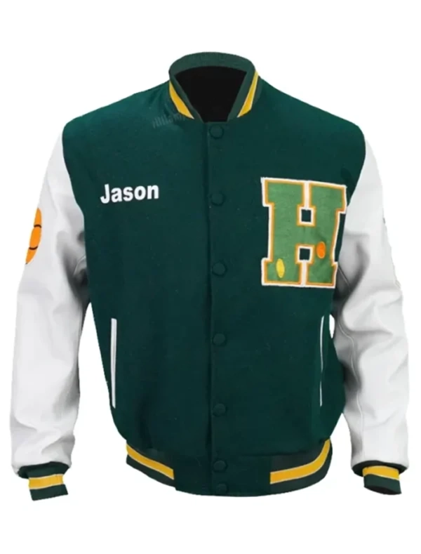 Mason Dye Stranger Things Season 04 Episode 06 Jason Carver Green and White Letterman Varsity Jacket is the perfect accessory for every season. Its design was inspired by Mason Dye’s flawless sense of fashion while playing Jason Craver. Due to the Jacket’s alluring features, like the buttoned front, rib-knitted style collar, rib-knitted cuffs, and lovely green & white combo, the item is already considered one of the best sellers in the entire range.