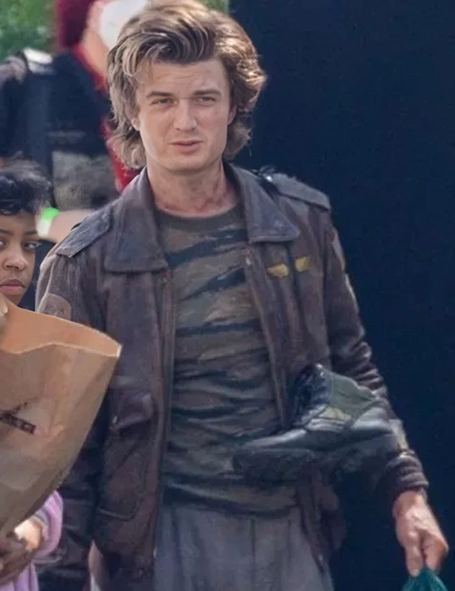 Joe Keery Stranger Things Season 04 Steve Harrington Brown Leather Bomber Jacket