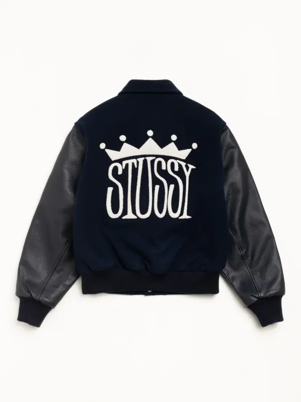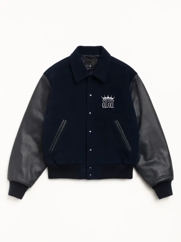 Crafted from high-quality materials, it offers durability, warmth, and a comfortable fit perfect for year-round styling. The traditional varsity silhouette is elevated with distinctive King-inspired detailing, premium stitching, and a clean, structured finish that reflects true Stussy heritage.