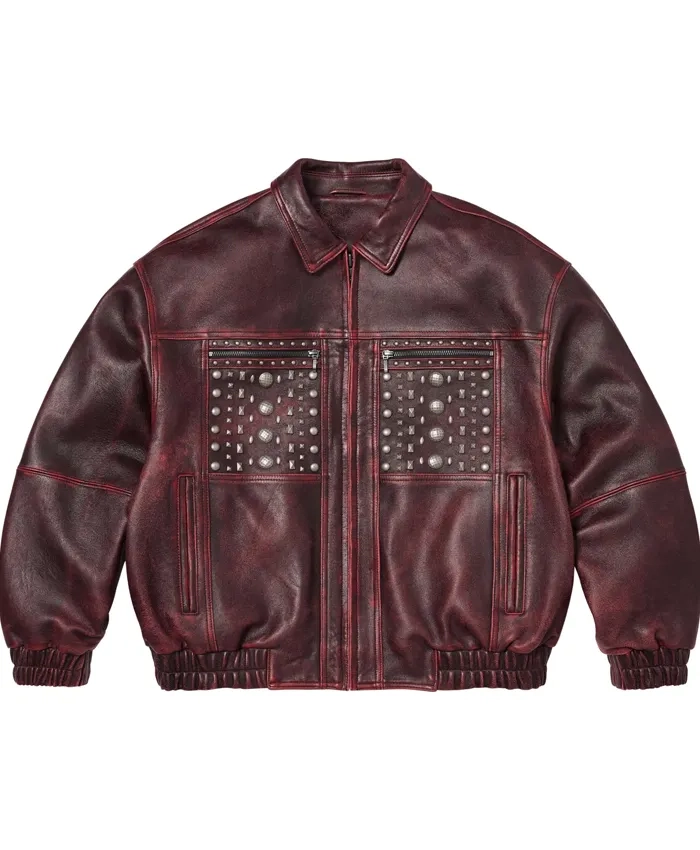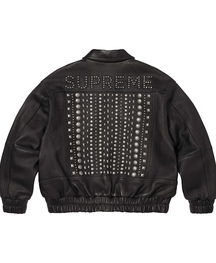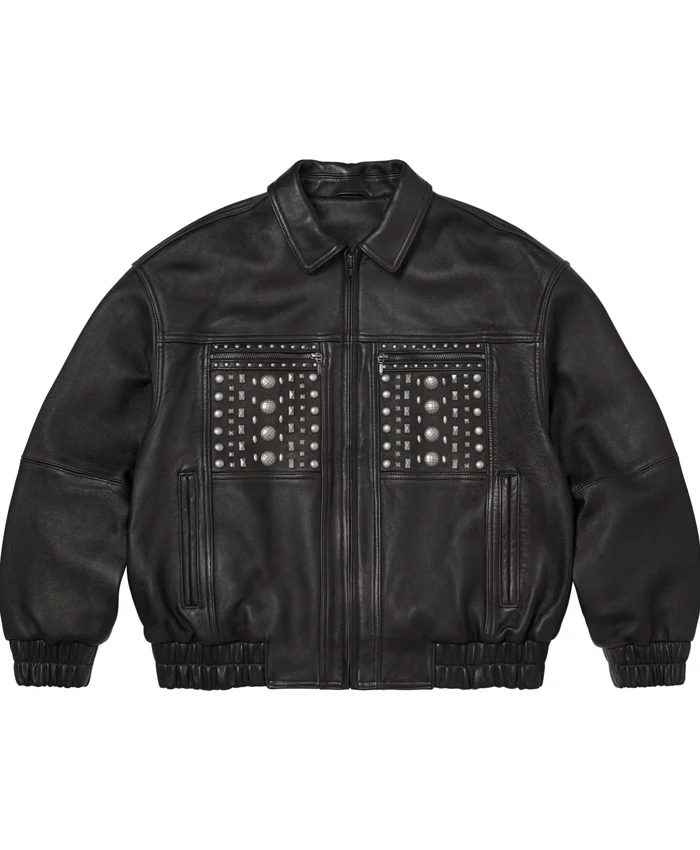 The Supreme SS26 Studded Leather Jacket is a striking piece from Supreme’s Spring/Summer 2026 collection. Combining premium leather craftsmanship with bold studded accents, this jacket delivers a perfect blend of rebellious streetwear and high-fashion edge.Crafted from top-quality leather, the jacket offers durability, a soft touch, and a sleek silhouette. Its studded detailing across the shoulders and sleeves creates a standout statement, making it ideal for fashion-forward individuals who want to make a lasting impression. The front zipper closure ensures a secure fit, while the inner lining adds comfort for all-day wear.Designed for collectors, hypebeasts, and Supreme enthusiasts, this jacket pairs effortlessly with jeans, sneakers, or layered streetwear outfits. The SS26 Studded Leather Jacket is not just outerwear—it’s a bold declaration of style and attitude.