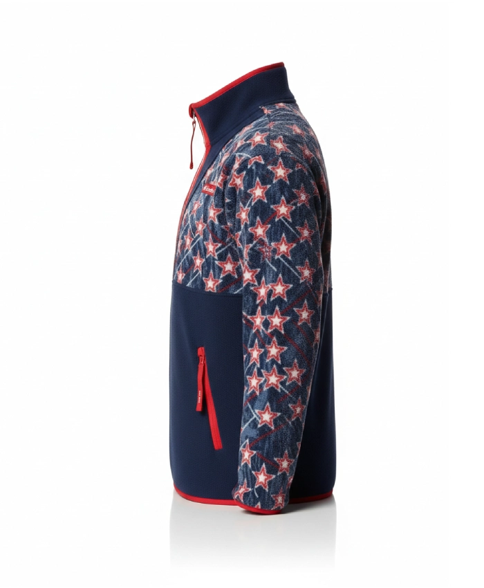 Fantastic jacket! The navy blue shade looks even better in person. The stars pattern design really represents Team USA pride. The material feels premium and durable. Definitely recommend it to anyone looking for comfort and style.