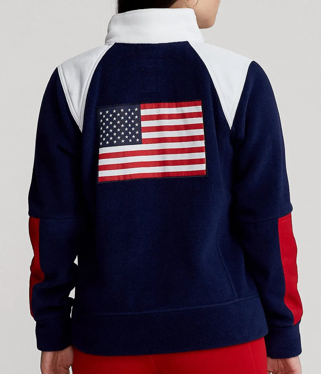 Absolutely love this jacket. The red, white, and blue combo really stands out. The fleece keeps me warm while the nylon panels block the wind