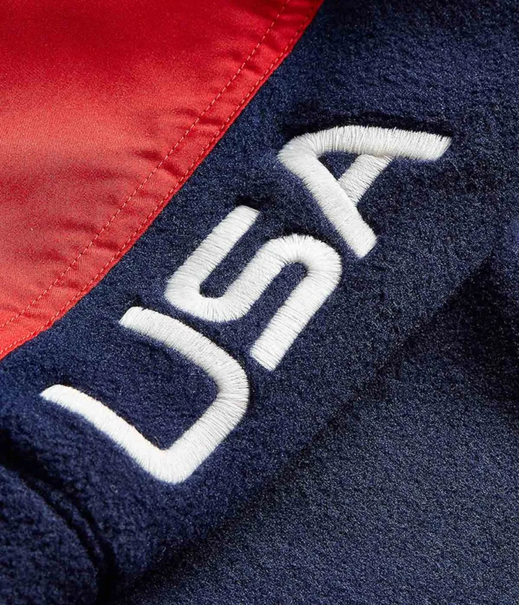 Great hybrid design. Not too heavy but warm enough for chilly evenings. The USA Olympic logo looks clean and well stitched